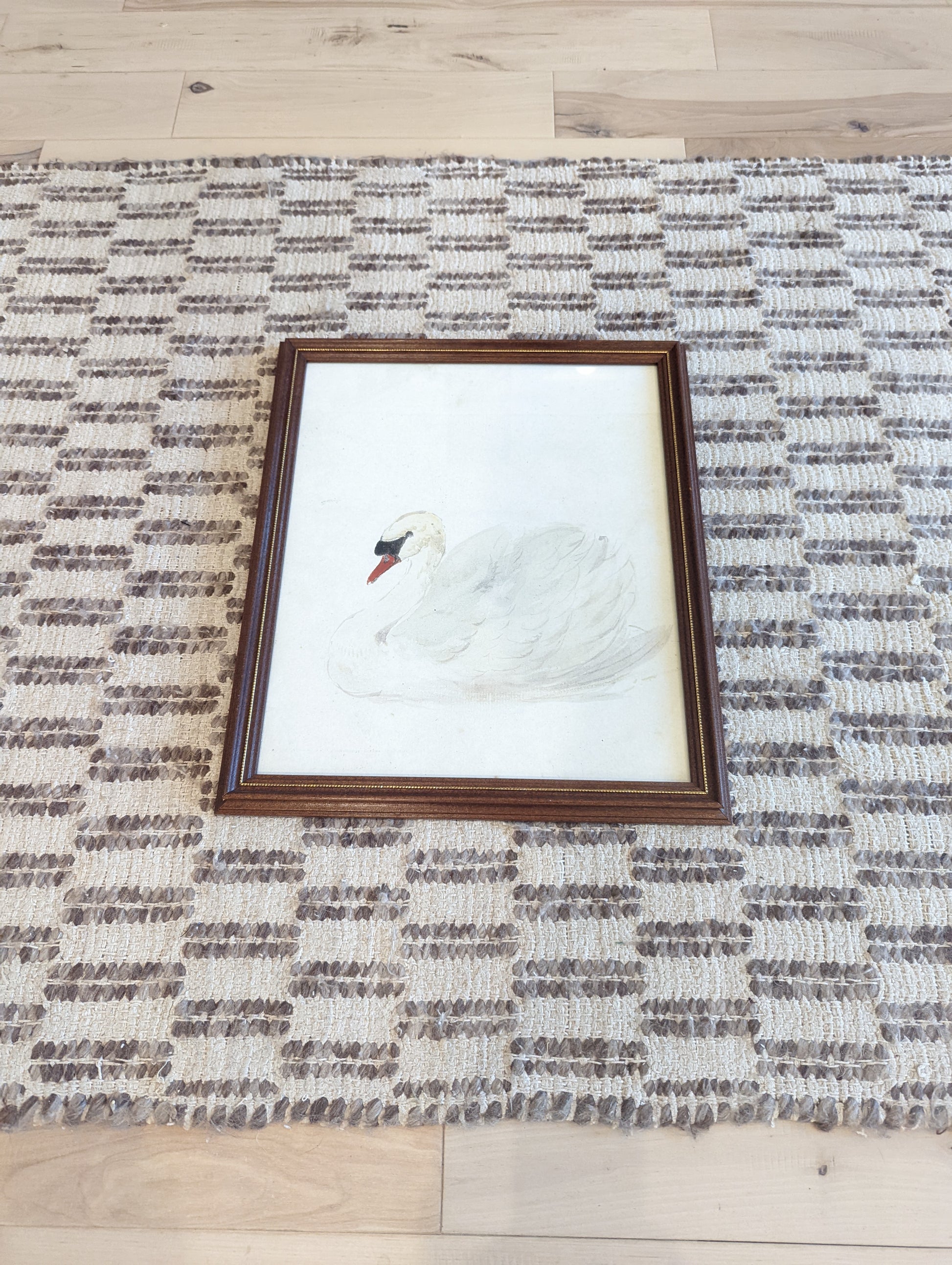 Swan Print in Wood Frame with Gold Trim 15x18