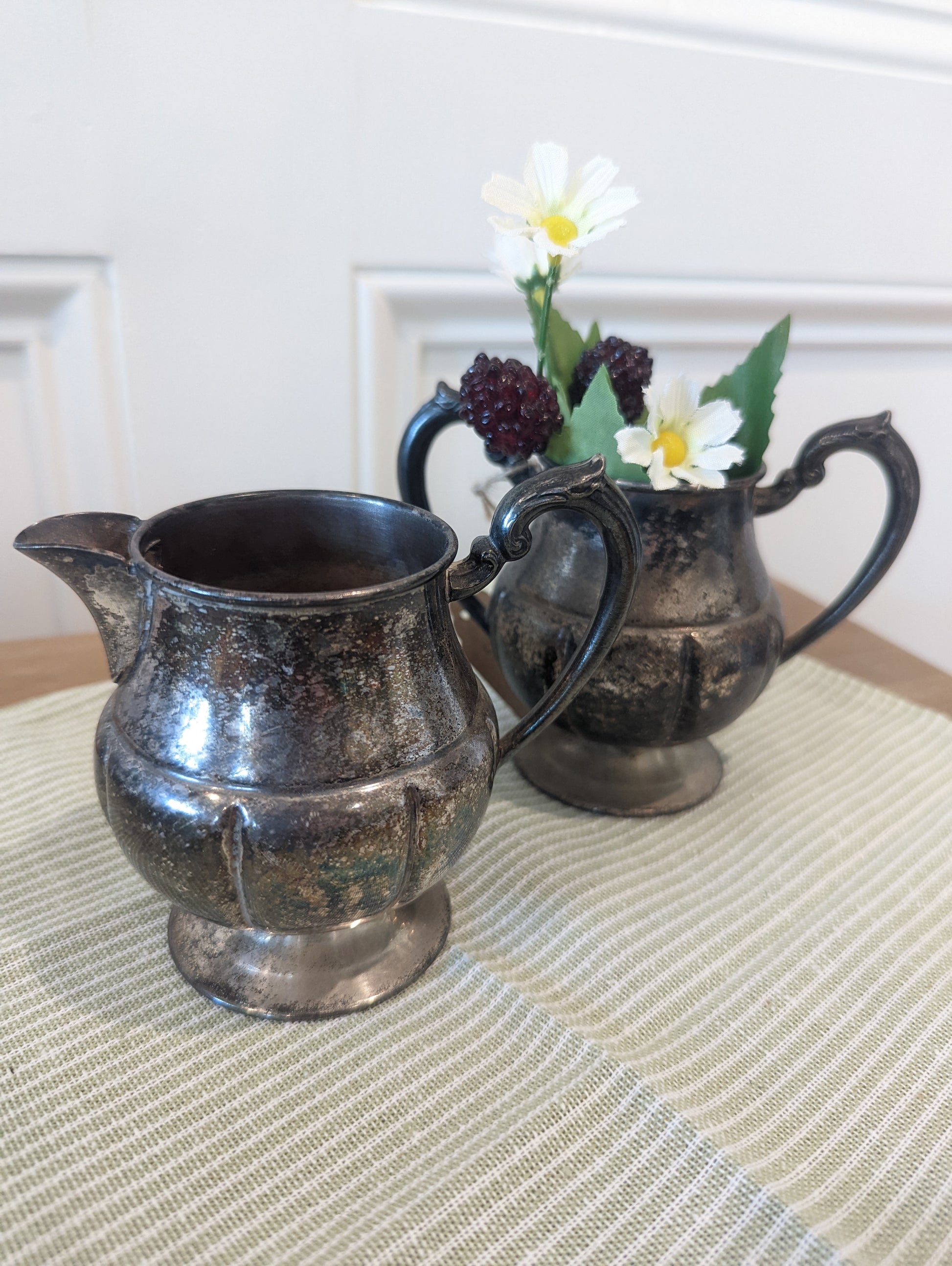 Silver vintage cream and sugar